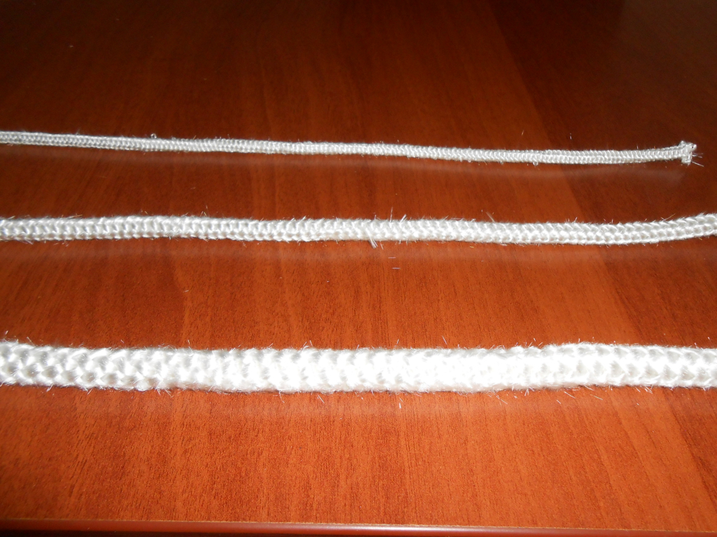Это канат, в основе которого используются тонкие полупрозрачные стеклянные нити. Предназначен для герметизации дверок котла, способен выдержать максимальную рабочую температуры до 550 градусов, имеет очень высокую теплоизоляцию и предотвращает даже минимальную потерю тепла. Стойкость к влаге обеспечивает долгую эксплуатацию отопительного прибора и оберегает его от попадания влаги внутрь котла. Недостатком стеклянного шнура является: неустойчивость к процессам трения, пыль, которая возникает при разделении шнура (может вызывать раздражительную реакцию на теле человека). Рекомендуется контактировать с ним в перчатках.